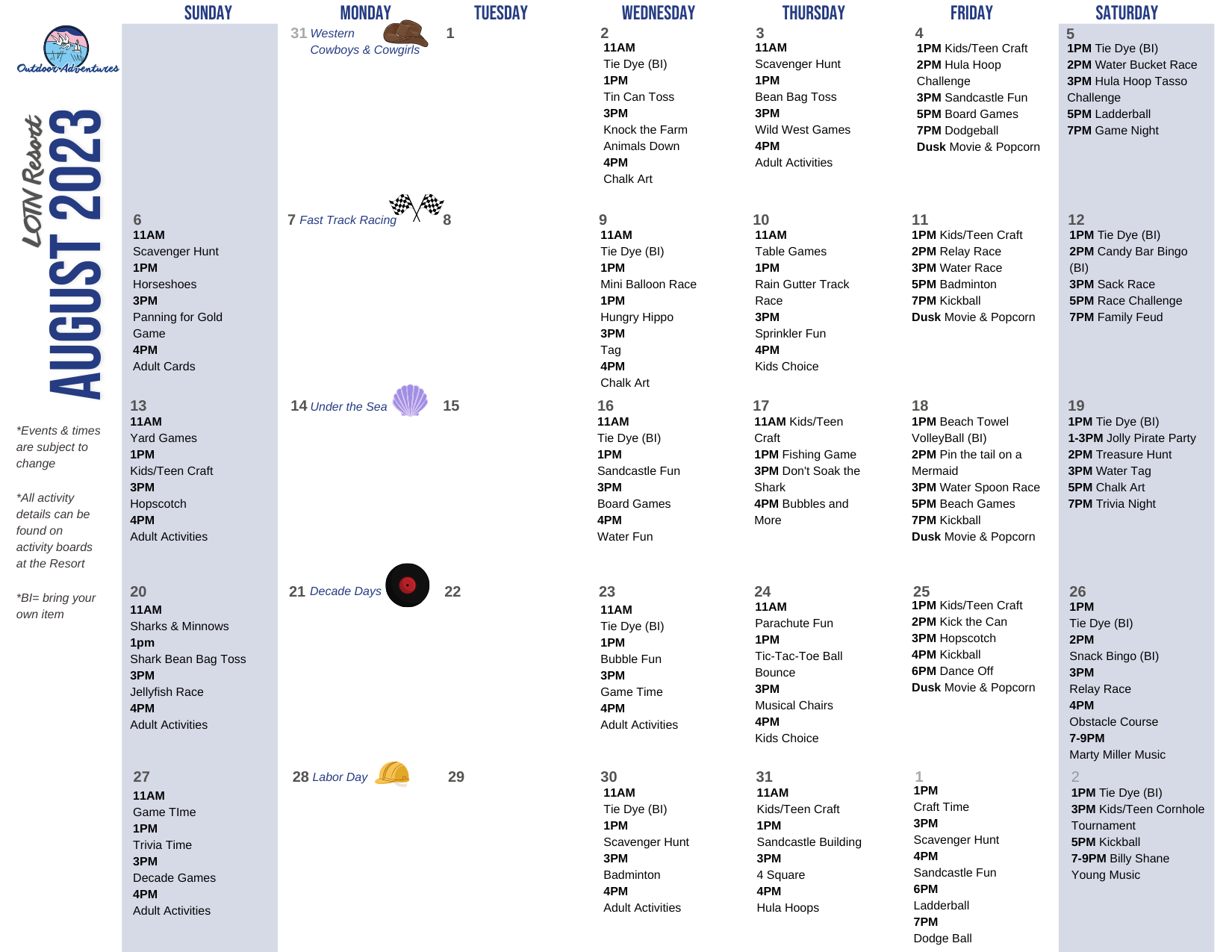 LOTN Resort 2023 Activity Calendar_August