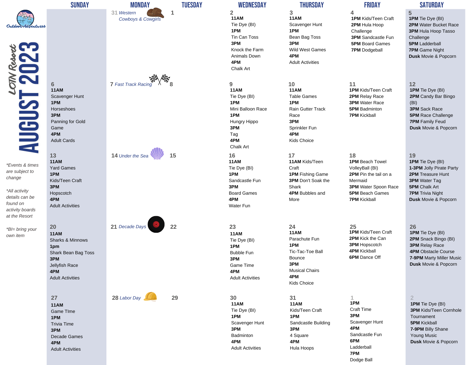 LOTN Resort 2023 Activity Calendar_August_UPDATED