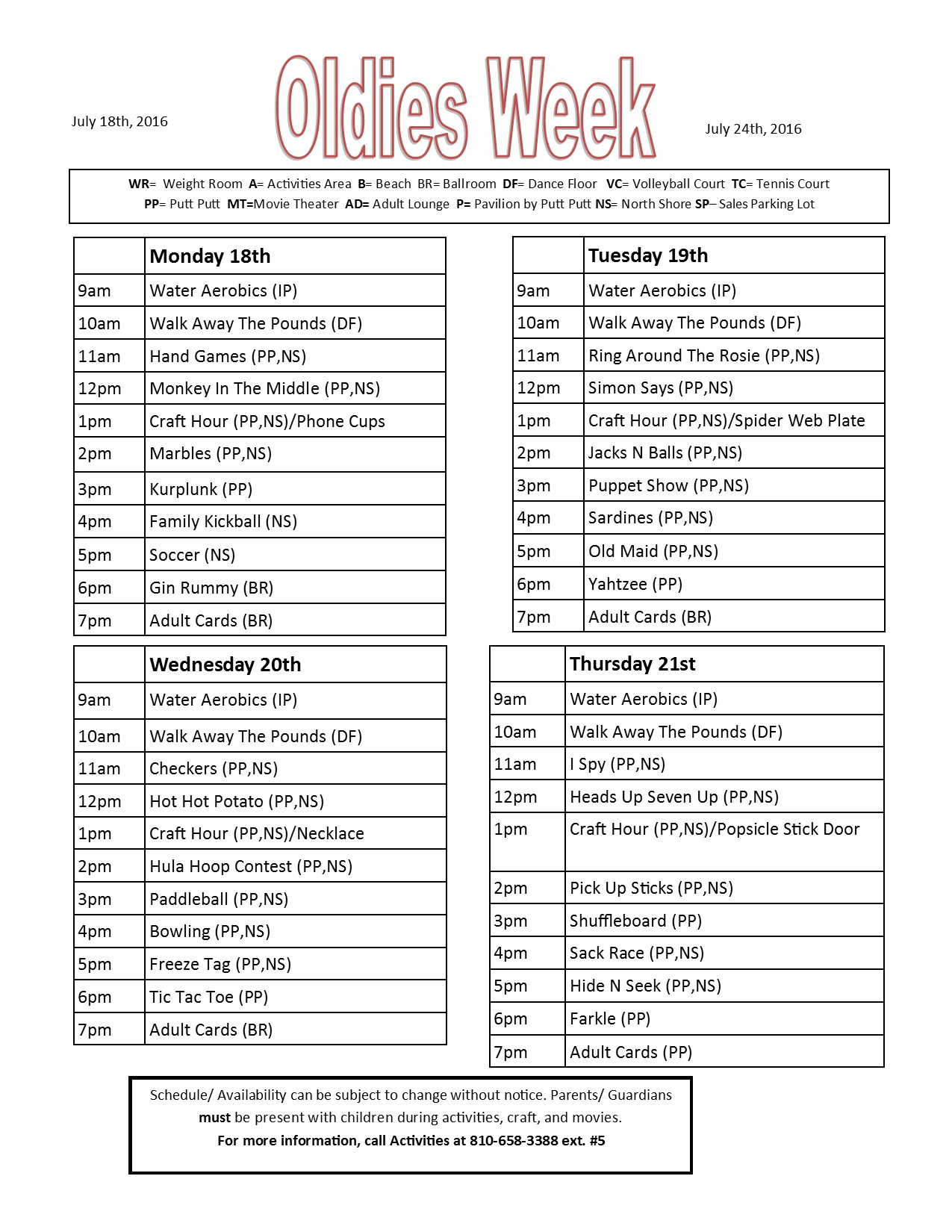 Oldies Week 2016 p1 - Outdoor Adventures Resorts